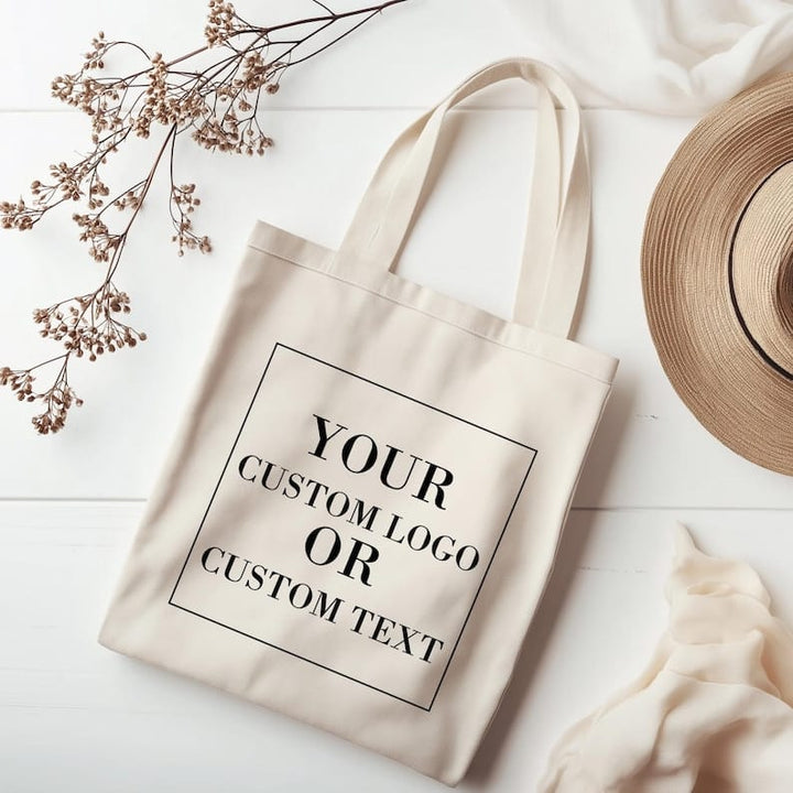 Elevate your brand or personalize your gifts with our versatile Custom Logo & Text Canvas Tote Bag. This bag is the ideal blank slate for showcasing your business logo, custom text, a special quote, or unique artwork. It combines practical function with powerful branding, making it perfect for promotional giveaways, business events, team uniforms, or creating personalized wedding favors.